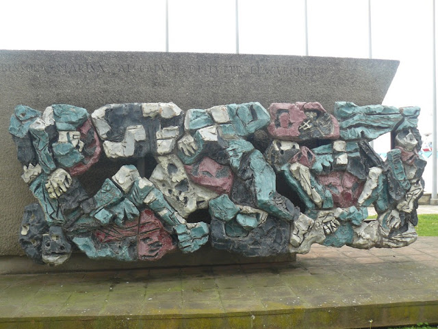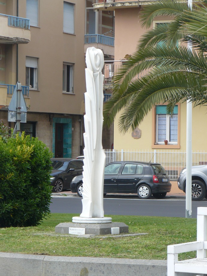 Oltre ai graffiti, un elemento importante sono elementi scultorei che punteggiano qua e là la passeggiata, inserendo un elemento tridimensionale e verticale all’impatto complessivo (le sfere vagamente alla Magritte sono di Lucio Fontana, che ebbe studio in città). Anche qui prevale la scelta dell’astrazione, salvo in casi singoli come il monumento alla Ceramista storica; nel percorso risultano armoniosamente inseriti anche sculture “istituzionali” come il monumento ai caduti delle due guerre, coloratissimo e astratto, che viene così valorizzato.