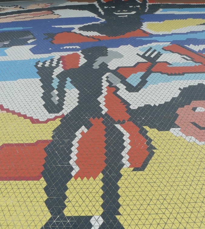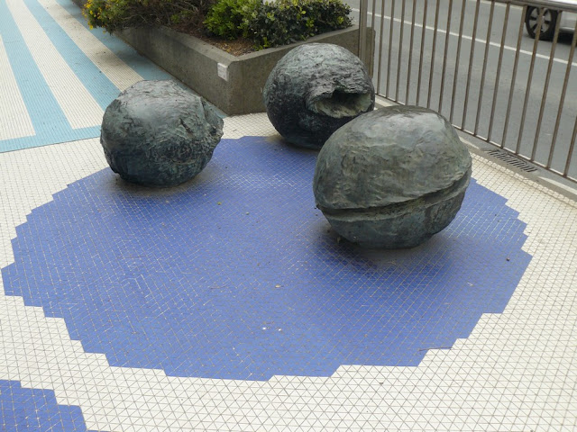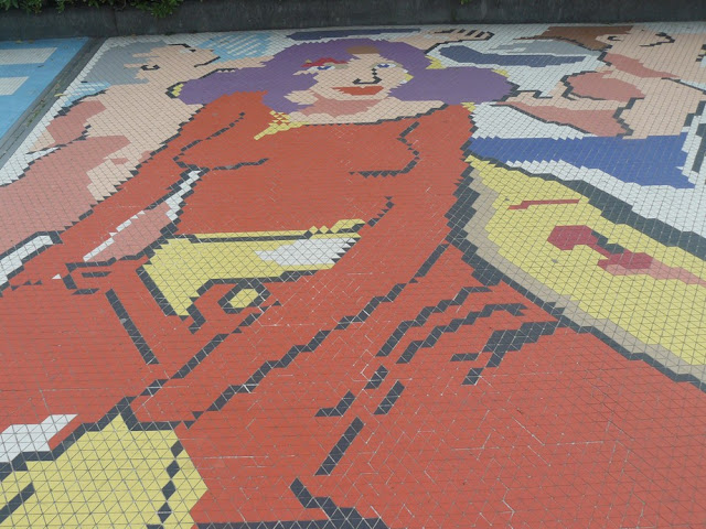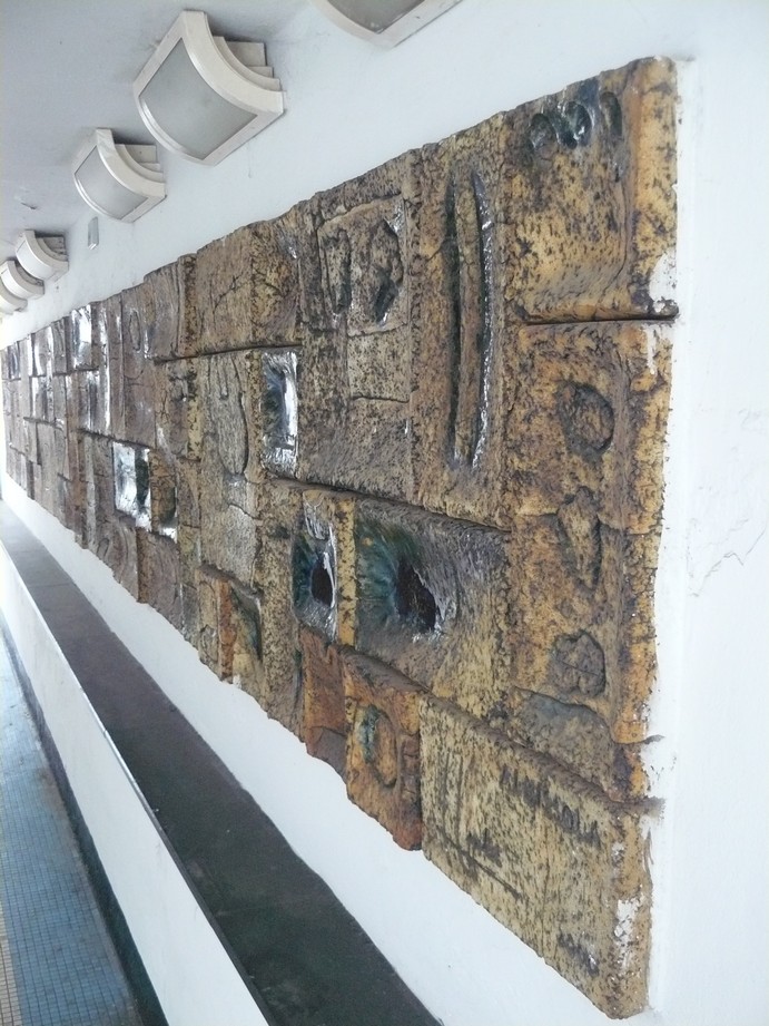 L’attrazione principale sono appunto questi mosaici dal tassello a triangolo equilatero, ventisette (se non erro) disegni molto grandi, sotto i piedi dei turisti sul passeggio principale. Figurazioni solitamente coloratissime, inevitabilmente tendenti all’astrazione, che rendono la passeggiata particolarmente gradevole e interessante.