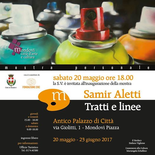 Si è inaugurata questo sabato la bella mostra di Samir Aletti, “Tratti e linee”, di cui vedete sopra il manifesto. Uno degli ultimi atti culturali di questa amministrazione monregalese, che chiude nel segno di un giovane artista, alla sua prima personale in città e in assoluto, come ha voluto ricordare l’assessore alla Cultura Mariangela Schellino.
