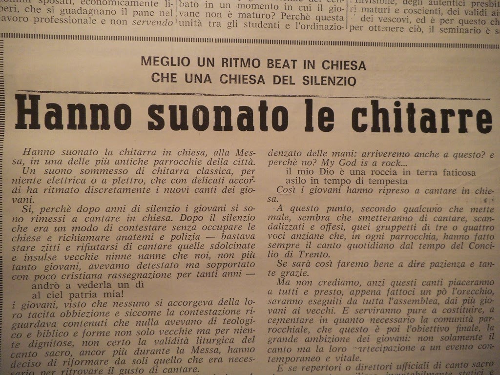 Intanto si approfondiscono le Lettere dal Deserto di Carretto (n.3), si pubblica uno studio di Elvio Chiagne sulla “Pacem in terris” (n.4), si stigmatizzano le resistenze alla nuova messa postconciliare (n.5.: “Latinismo dei chierici, infantilismo dei laici”).